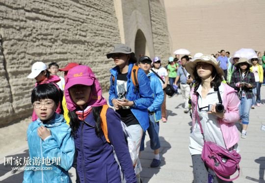 國(guó)家旅游地理 甘肅酒泉8月10日訊 8月10日,游客在嘉峪關(guān)城門(mén)前參觀。近一個(gè)月來(lái),我國(guó)許多地區(qū)持續(xù)高溫天氣,西北地區(qū)成為眾多游客逃離酷暑、納涼觀光的好去處。據(jù)了解,目前甘肅省內(nèi)各大旅行社絲綢之路旅游線路預(yù)訂火爆。敦煌莫高窟、嘉峪關(guān)等多個(gè)景區(qū)游客爆滿,賓館甚至出現(xiàn)一房難求的現(xiàn)象,旅游部門(mén)提醒有出游需求的游客盡量提早預(yù)訂,保證順利出游。 /新華社記者 陳斌 攝