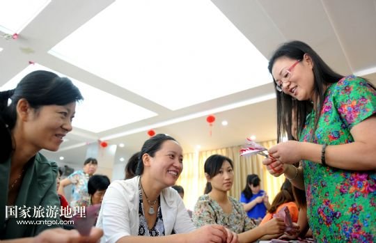 國家旅游地理 安徽合肥9月17日訊 9月17日,非遺剪紙傳人侯宏妹向?qū)W員講解“花好月圓”剪紙作品的制作。當(dāng)日,合肥市清溪路社區(qū)邀請非物質(zhì)文化遺產(chǎn)剪紙傳人侯宏妹來到社區(qū)向剪紙愛好者傳授技藝,并一起創(chuàng)作中秋題材的剪紙作品,迎接中秋佳節(jié)。 /新華社記者劉軍喜攝