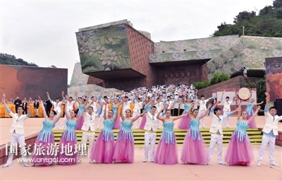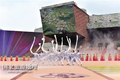 開幕式上,以“慈光千年·與夢同行”為主題的旅游演出《一山·一佛·一世界》,分為序——《慈光·千年》、上篇——《一山·情依舊》、中篇——《一佛·慈天下》、下篇——《一世界·心若在》、尾聲——《與夢·同行》五大段落,通過梵音梵樂、音樂舞蹈等形式,精彩演繹樂山彌勒文化、普賢文化、漢唐風韻等文化內涵。/三江都市報