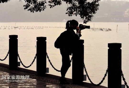 國(guó)家旅游地理 浙江杭州11月5日訊 11月4日,一對(duì)男女青年在西湖邊拍照留影。生活在杭州的人是幸福的,因?yàn)楹贾萦形骱?。清晨的西湖,恬靜,淡雅,柔美,朦朧。岸邊,堤上,健身鍛煉的市民、散步賞景的游人,在湖水、小橋、亭閣、石欄的襯伴下,構(gòu)成了一幅幅剪影效果的水墨圖畫(huà)。 /新華社記者王頌攝
