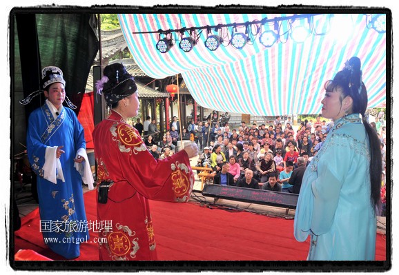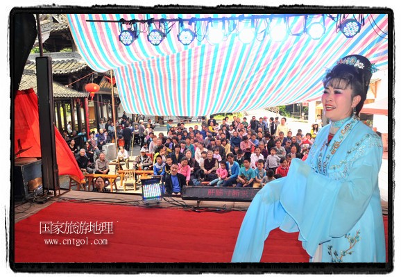國家旅游地理 江西上饒5月1日訊(特約記者 王國紅攝影報道)5月1日,婺源縣賦春鎮(zhèn)源頭村景區(qū),村民和游客在景區(qū)村口圍觀觀看安徽黃梅戲《婆媳情》。“五一”小長假期間,江西省婺源縣賦春鎮(zhèn)源頭村景區(qū)邀請了安徽黃梅戲劇團在村門口為村民表演輪翻上演黃梅戲,讓老百姓足不出戶就可以享受到豐富的文化大餐,促進了農村精神文明建設,受到群眾的廣泛歡迎,讓大家歡快過上“五一”勞動節(jié)。