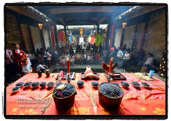國(guó)家旅游地理 江西婺源(上饒)5月31日訊(特約記者王國(guó)紅 通訊員程新德攝影報(bào)道) “祭祀開(kāi)始、鳴炮奏樂(lè)、祭拜、主持人講話、結(jié)束鳴炮”,5月25日,農(nóng)歷四月初八,石佛村烏飯節(jié),村民將自家精心制作的烏飯端進(jìn)祠堂祭祀。江西省婺源縣段莘鄉(xiāng)石佛村每年都要舉行烏飯祭祖活動(dòng),各家各戶(hù)將自家精心制作的烏飯端進(jìn)祠堂……