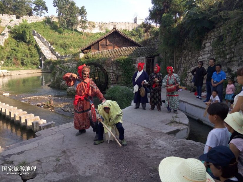 這是福泉民間老藝人在表演福泉陽(yáng)戲《二郎鎖孽龍》。福泉陽(yáng)戲,所謂陽(yáng)戲是指唱給活著的人聽的;也有陰戲,便是唱給死去的人聽的。陽(yáng)戲主要有兩種功能,一種是娛樂(lè),另一種便是還愿納吉,意思是之前向天神祈求的事情實(shí)現(xiàn)了,于是便唱起陽(yáng)戲向天神還愿,同時(shí)也向天神祈求吉祥。福泉老藝人在表演陽(yáng)戲的時(shí)候,雖然言語(yǔ)不通,但依然可以感受到陽(yáng)戲所具有的獨(dú)特魅力,以及陽(yáng)戲中所蘊(yùn)含的民俗文化。