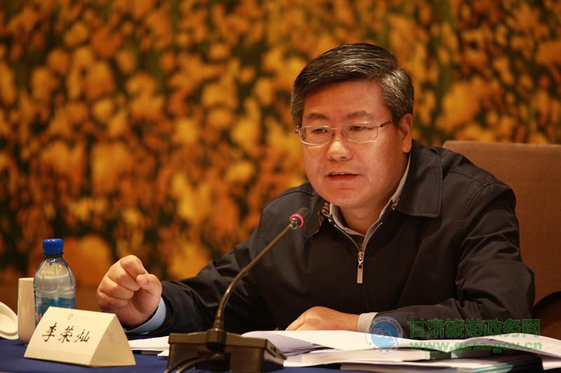 圖為李榮燦副省長主持會議并講話。甘肅省旅游局 張林濤攝